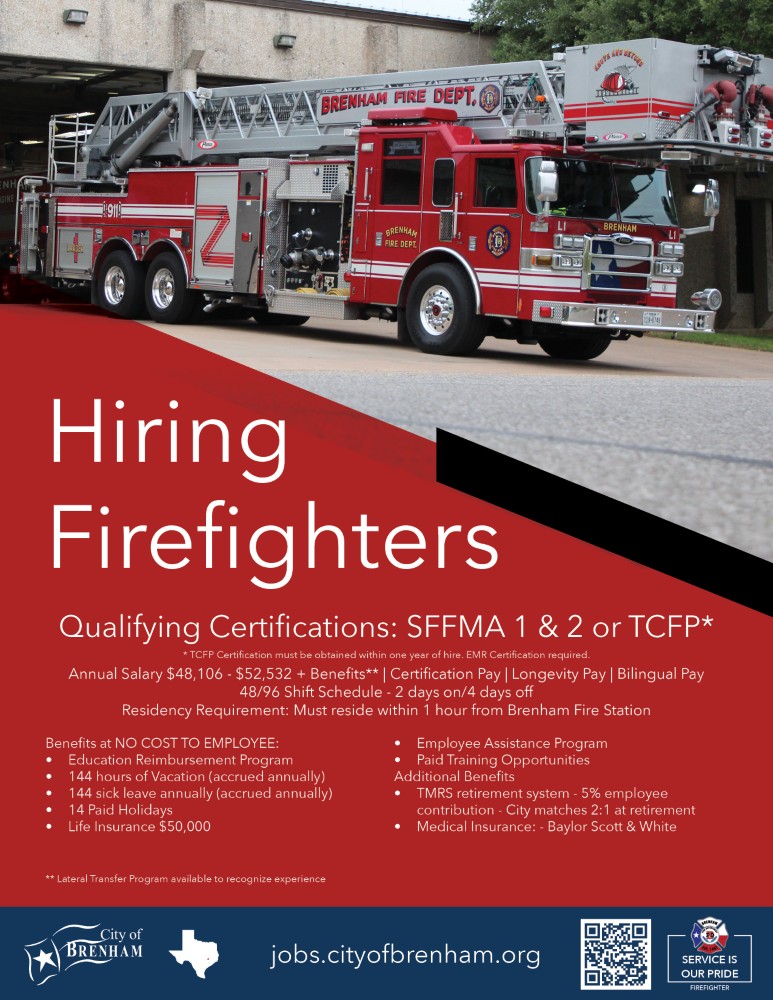 All positions are open until filled. The City of Brenham is an Equal Opportunity Employer.